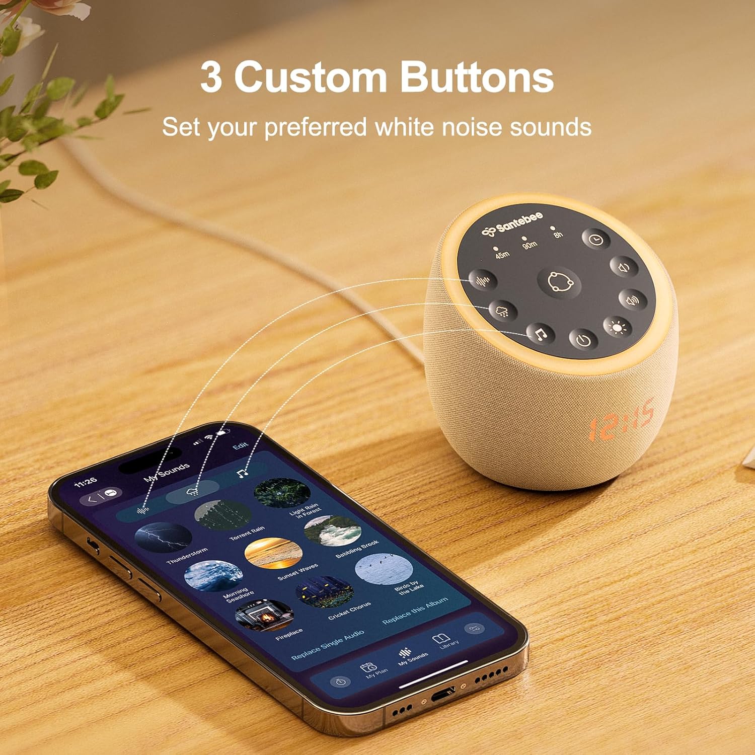 𝐂𝐮𝐬𝐭𝐨𝐦 𝟑 𝐁𝐮𝐭𝐭𝐨𝐧𝐬- Set up to 9 favorite sounds per button, perfectly tailored to your relaxation and sleep needs