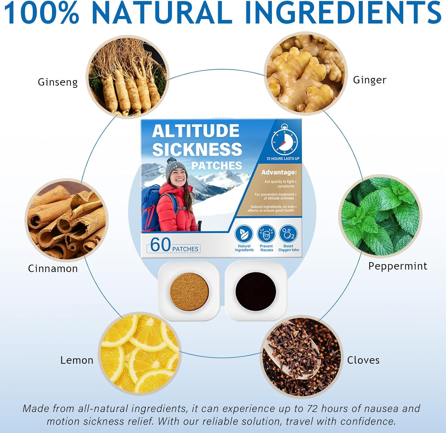 【Safe and Harmless】Altitude Sickness Prevention Patches are easy to use, no need for oral intake or injections, avoiding the irritation of the gastrointestinal tract and possible side effects of drugs.