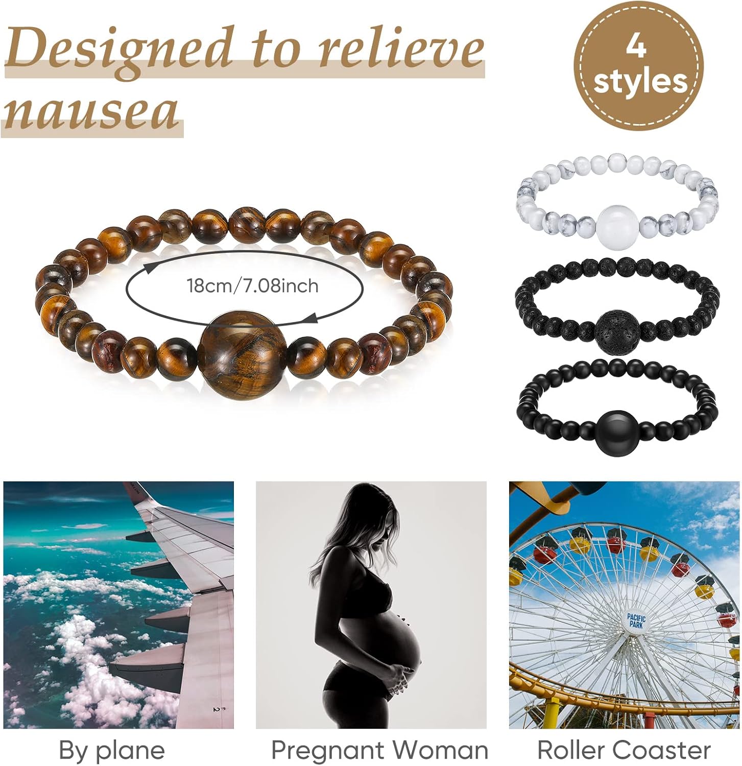 Sufficient to Share: you will get 4 pieces of motion sickness bracelets in various styles, which can effectively relieve you of nausea, sufficient to satisfy your needs of using, replacing, and sharing with friends